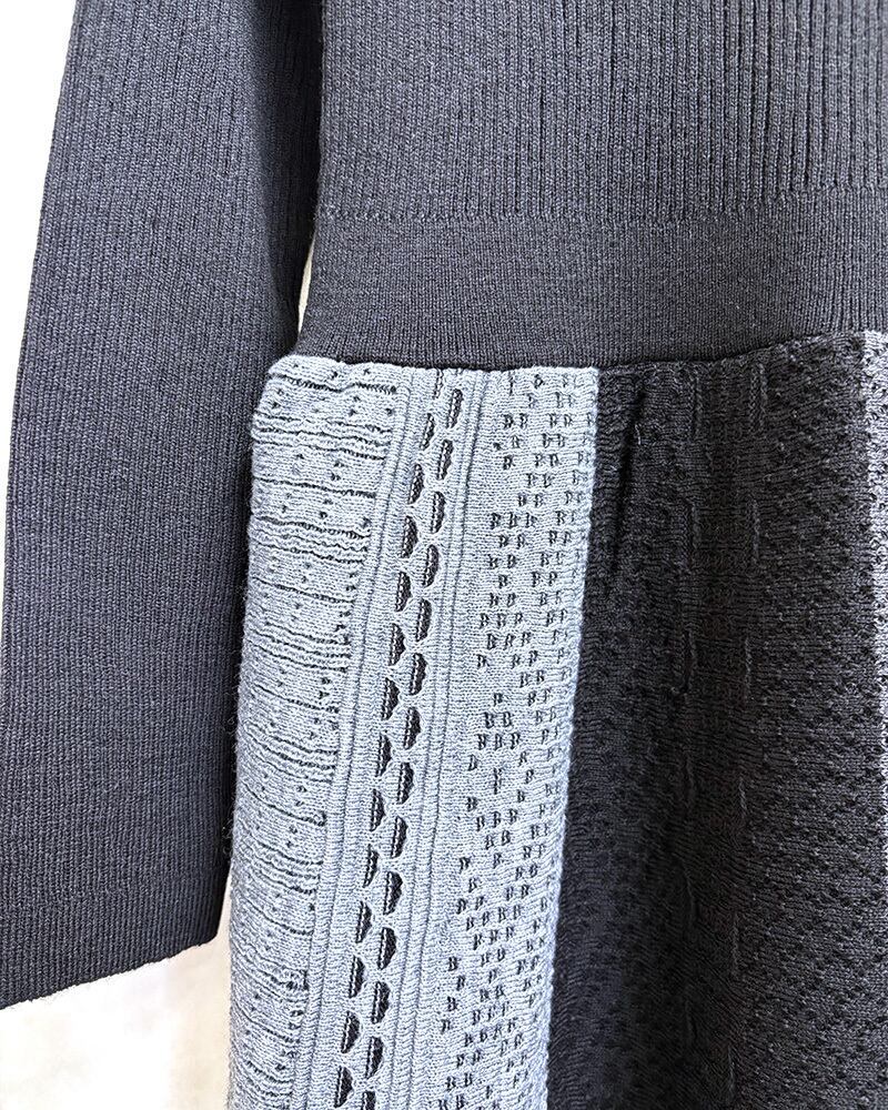 スカート部分がグレーの配色、数種類の編み方を織り交ぜています。