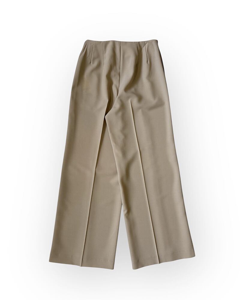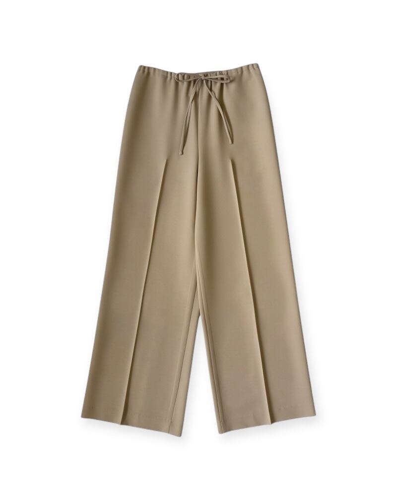 膝部分に入れた脇線のパターン設計により、美しい落ち感とすっきりとしたワイドシルエットを実現。